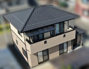 【外壁】プラチナシリコンREVO2000-IR (パイオニア/ホワイトリリィ)【屋根】スーパーシャネツサーモF (ラセットブラウン)