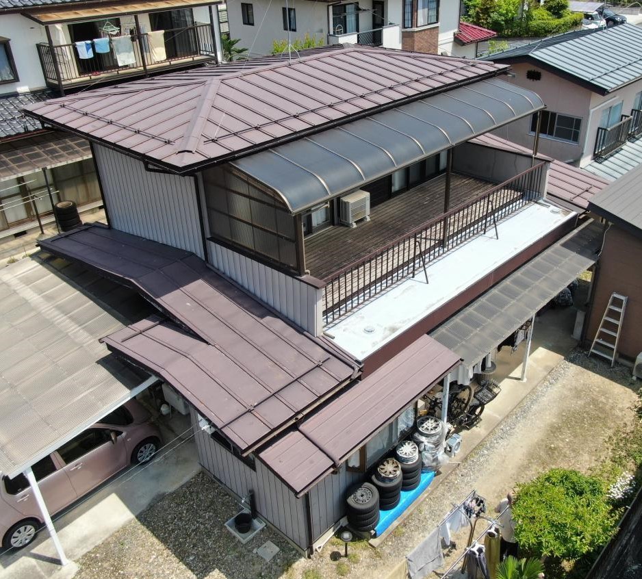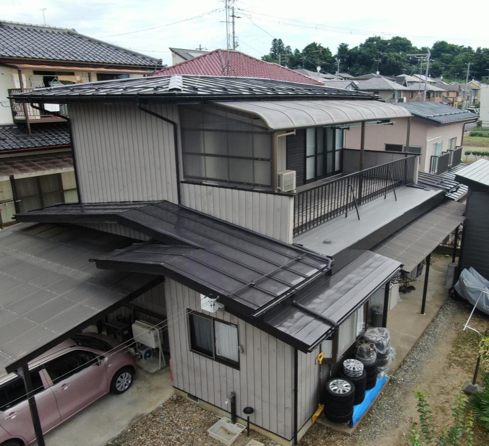 ブラウンの屋根へ大変身で落ち着いた印象に!
