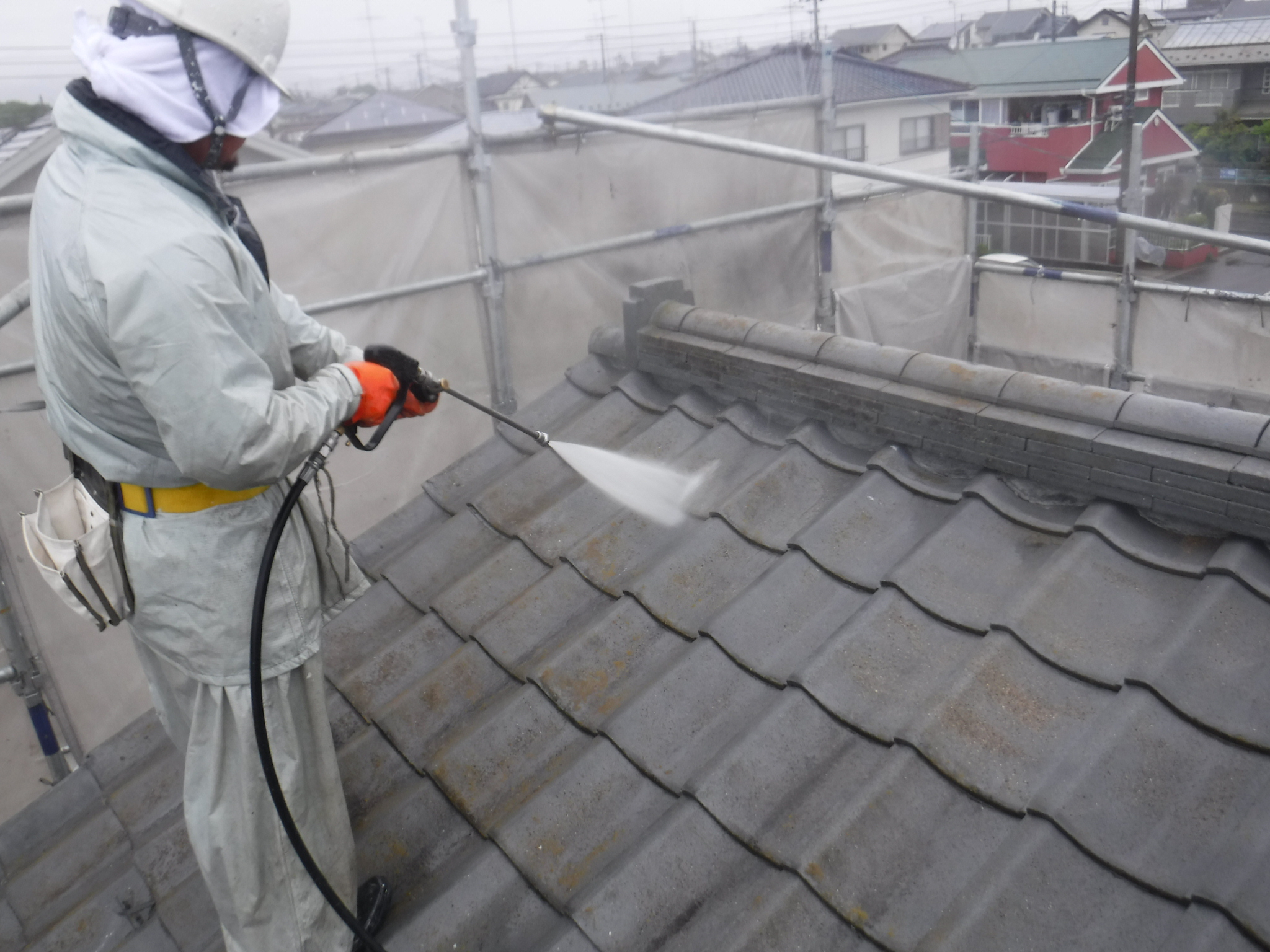 屋根 高圧洗浄状況