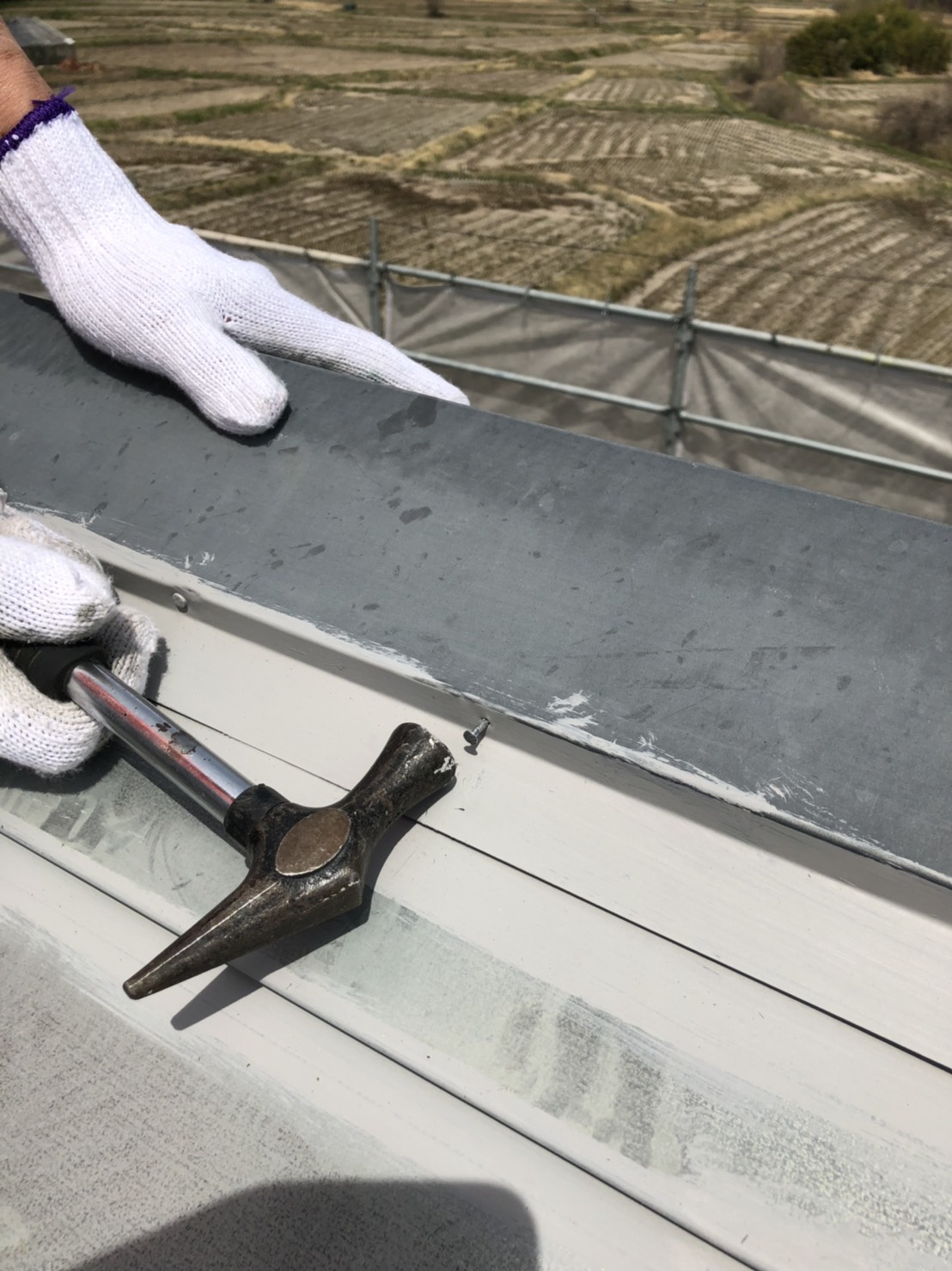 棟板金 釘打ち直し状況
