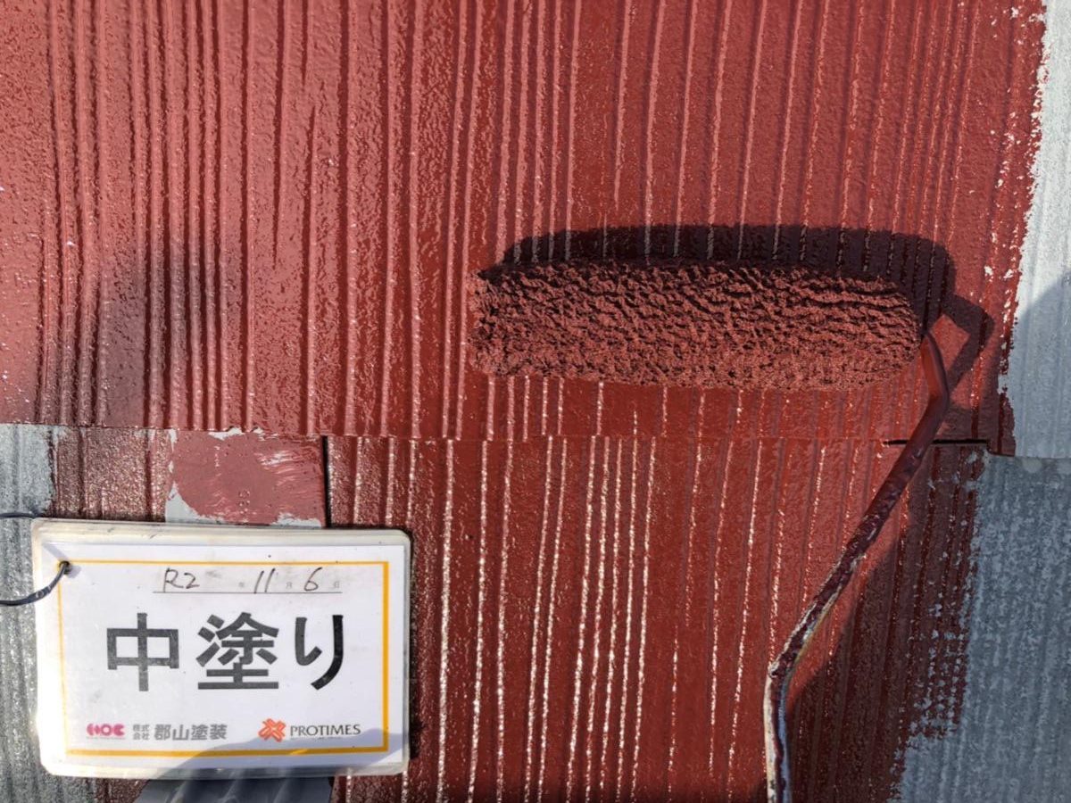 棟板金 下塗り状況