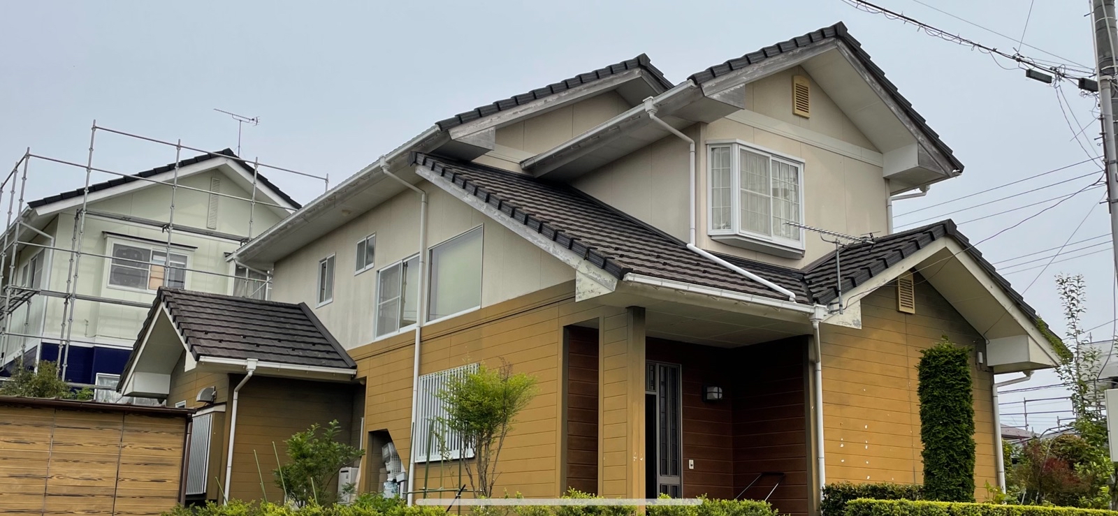 屋根にモニエル瓦が使用されていましたので、通常よりも強力な温水高圧洗浄でしっかり下地処理しました。高耐久なフッ素プランで安心の仕上がりです。