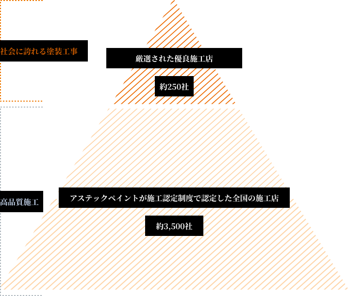 アステックペイントが施工方法などの技術的な指導を実施し「施工品質」と「品質管理」の両面で安心して消費者へ塗装をご提供できる施工店のみが取り扱いできる特別な塗料です。
